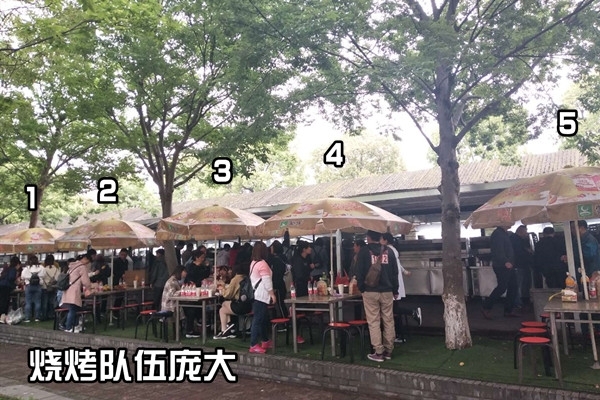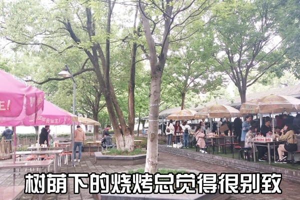 畢竟是老牌的燒烤圣地了,以前這樹下可都是泥濘地,現在都鋪上了磚,樹蔭下吃吃喝喝打打牌,這小日子,絕了。