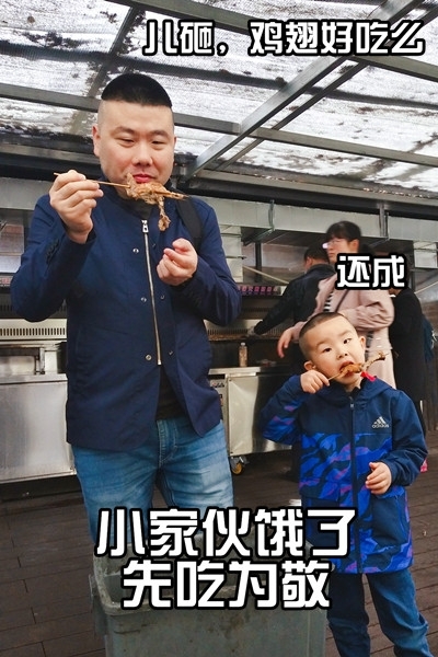 嗯嗯,看這架勢,小楊同學是真餓了,多吃肉,長高點,往豎里長,可別像你爸,往橫里長了。