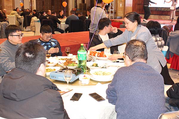 在欣賞精彩節目的同時,大家圍坐在一起,共享豐盛的年夜飯。觥籌交錯間,大家互道祝福,分享著過去一年的收獲與喜悅,也表達著對新一年的美好期許。整個年會現場洋溢著歡樂、祥和的氛圍,充分展現了創想儀器大家庭的溫暖與凝聚力。