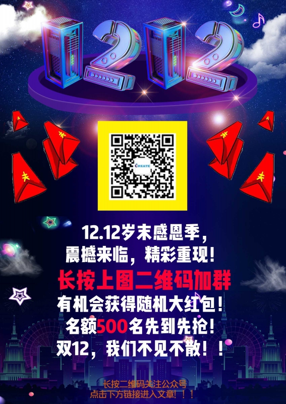 您也可以登陸微信關注我們“創想儀器”微信公眾號,我們將會在微信公眾號公布我們的“創想儀器雙12微信紅包群”二維碼。創想儀器雙12微信紅包群將會在每隔一段時間下紅包雨3元、5元、10元紅包隨機搶!另外還有20元!30元!50元!100元大紅包不定時出現。歡迎多多關注!