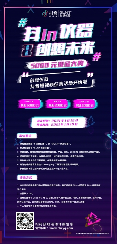 從即日起截止至2021年1月15日,參與“創想儀器”主題話題活動,只要你贏得最高點贊數,就有機會贏取5000元大獎。