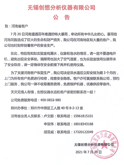 在此,特別告知如實驗室有漏水,儀器有泡水的情況,請一定不要通電開機,避免出現安全事故。強降雨也加大了空氣濕度,也為實驗室使用儀器帶來了安全隱忠,請一定確保在安全前提下再開機使用儀器。