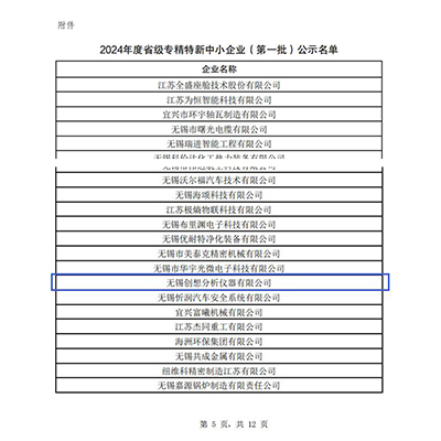 無錫創想分析儀器有限公司榮膺2024年度省級專精特新企業